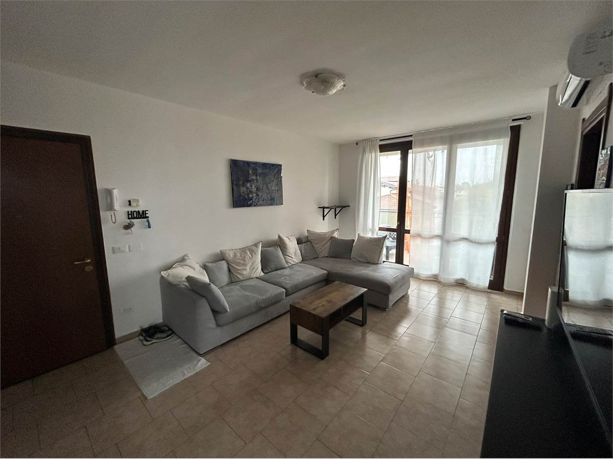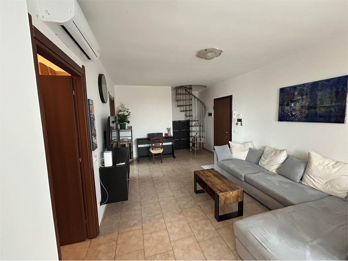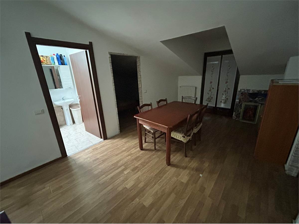 L'immobile si sviluppa nel seguente modo: soggiorno con ampio balcone loggiato, cucina semiabitabile con piccolo balcone, camera da letto matrimoniale e bagno con vasca e al piano superiore ampia mansarda con secondo bagno.