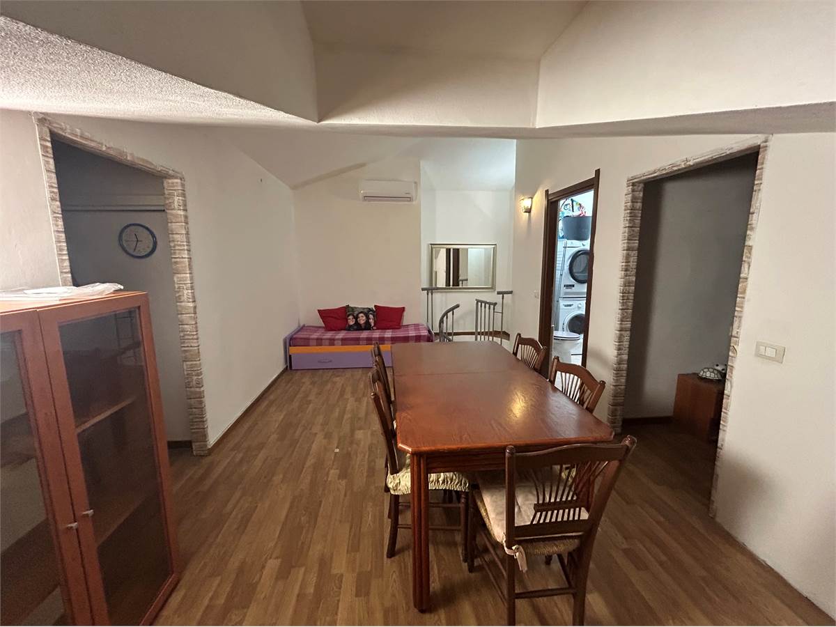 L'immobile si sviluppa nel seguente modo: soggiorno con ampio balcone loggiato, cucina semiabitabile con piccolo balcone, camera da letto matrimoniale e bagno con vasca e al piano superiore ampia mansarda con secondo bagno.