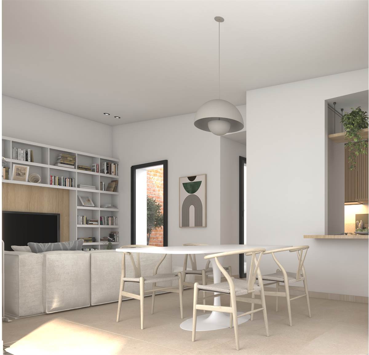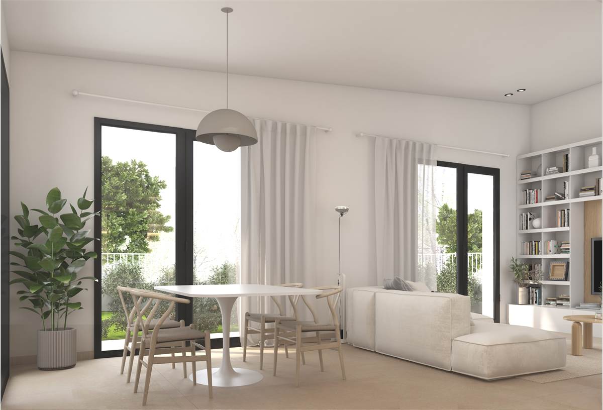 Le abitazioni si sviluppano su un unico piano e sono composte da ingresso, cucina, soggiorno con vista su patio interno e affaccio sul portico,zona notte con 2 camere da letto, comodo ripostiglio e 2 bagni.