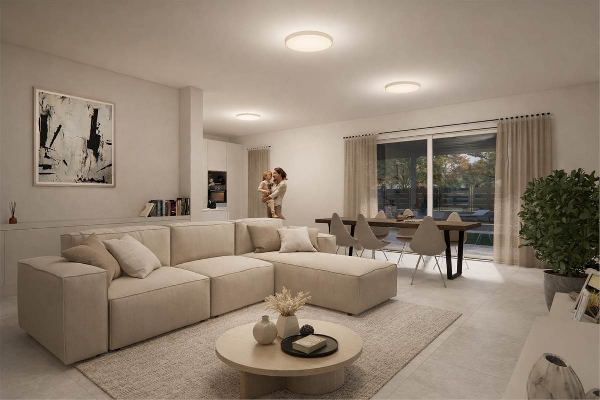 Le ville si sviluppano interamente al piano terra e offrono spazi ampi,razionali e luminosi. L’ingresso si apre su un'accogliente zona giorno con ampio soggiorno,cucina abitabile a vista affacciati su un generoso giardino ideale per pranzi all’aperto,e un bagno di servizio finestrato; la zona notte ospita tre spaziose camere da letto e il secondo bagno,perfetti per garantire comfort e privacy a ogni componente della famiglia.